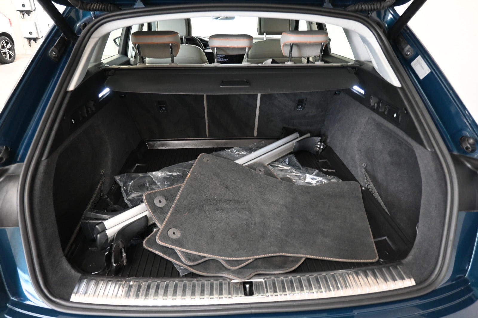 19" org. alufælge, el-soltag m. skyde/vippefunk., panorama glastag m. el-dug, el-klapbare sidespejle m/varme, LED kørelys, kurvelys, adaptive forlygter, matrix LED forlygter med dynamisk blinklys, LED baglygter med dynamisk blinklys, blanksorte tagrælings & rudelister, områdebelysning, orange bremsekalibre, sort optikpakke, fuldlakering i "Galaxyblå", sidespejle i titansort højglans.