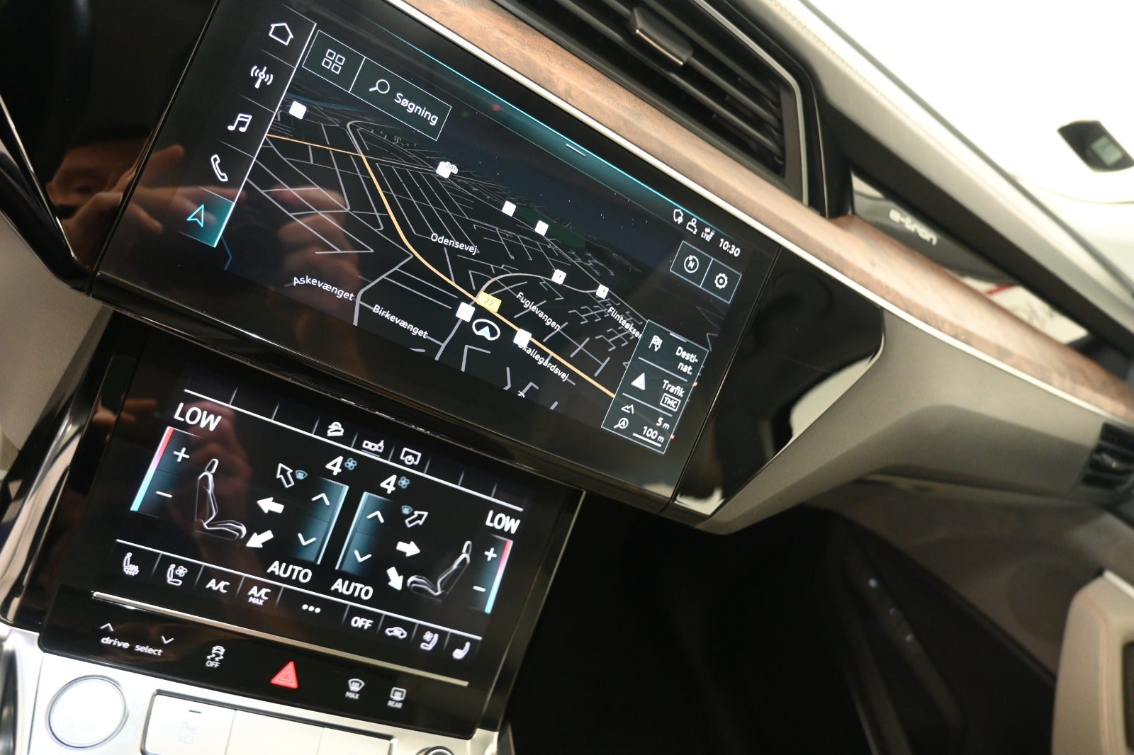 DAB+ radio m. ratbet., org. navigation med full-size kortvisnign i cockpit, håndfrit til mobil, musikstreaming via bluetooth, trådløs Android Auto & Apple Carplay, induktionslader, USB tilslutning, Bang & Olufsen premium sound system med 3D lyd.