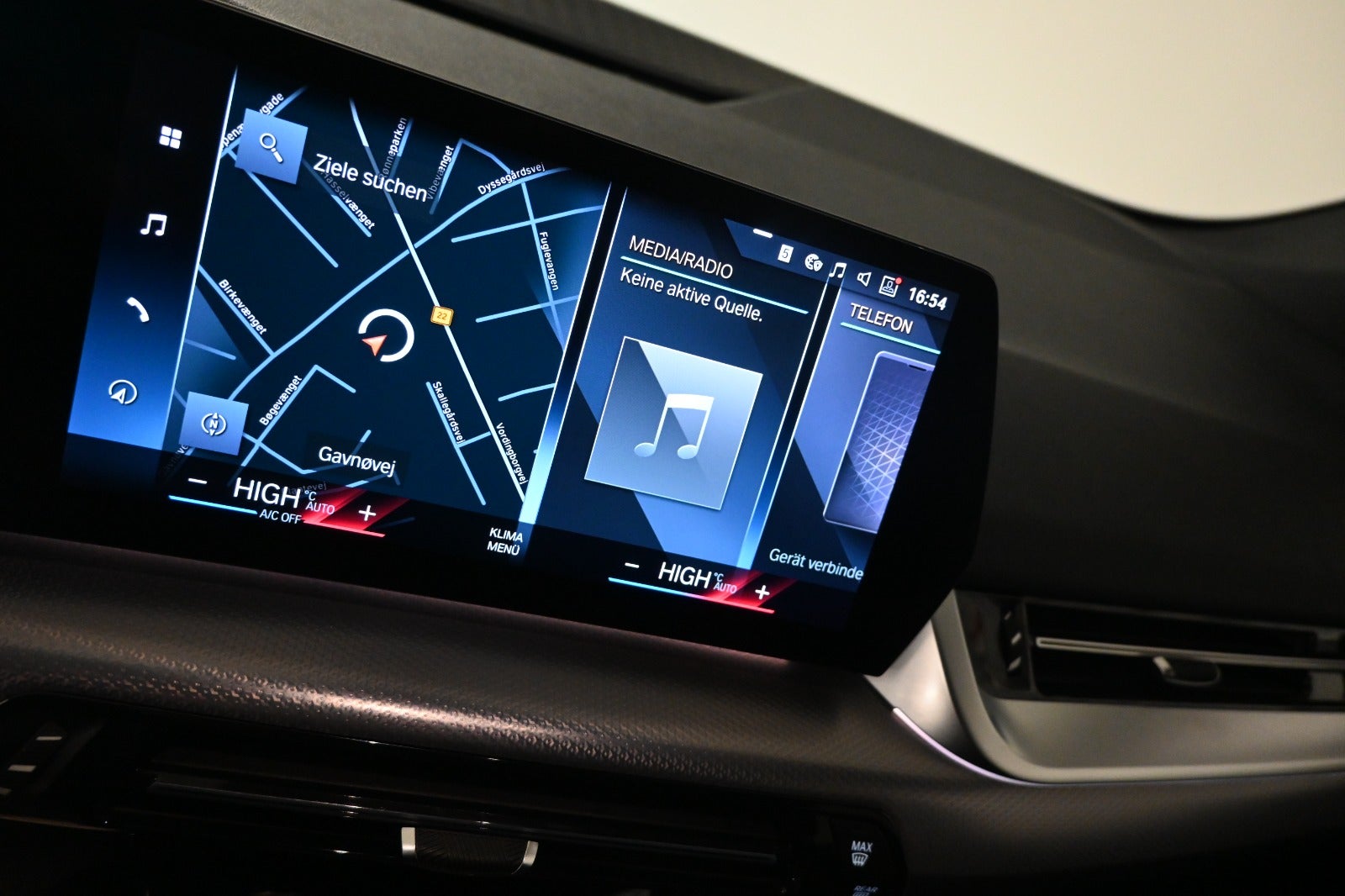 Automatgear, 2 zone klima, elektrisk kabinevarmer m. timer, fjernb. centrallås i nøgler, nøglefri tænding, adaptiv fartpilot med kø-assistent, udv. temp. måler, 3 trins sædevarme, 4x el-ruder, el betjent bagklap, elektrisk parkeringsbremse inkl. hill-hold, BMW drive modes, type-2 ladekabel & nødlader (mormorlader) medfølger.