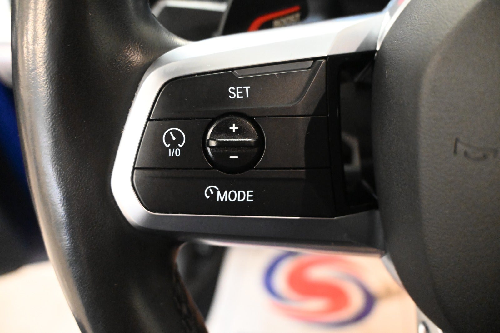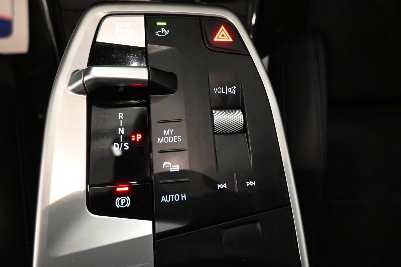 Kørecomputer, widescreen digitalt cockpit professionel m. kortvisning, bagagerumsdækken, multifunktionsrat, M-sport læderrat m. shiftpaddels, læder/alcantara-indtræk m. blå kontrastsyninger, sportssæder m. variabel lårstøtte, højdejust. forsæder, splitbagsæde, mørk loftbeklædning, ambiente belysning, Alu-interiørlister "Hexacube Dark", svævende midterkonsol, komplet M-sport interiør.