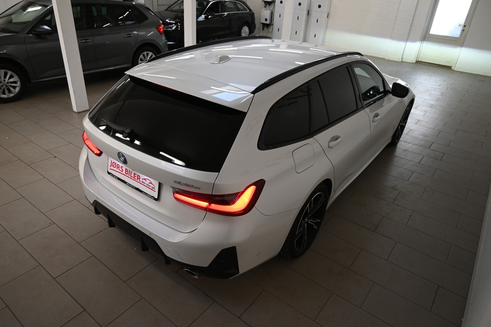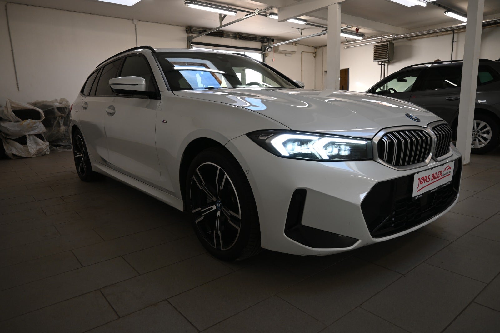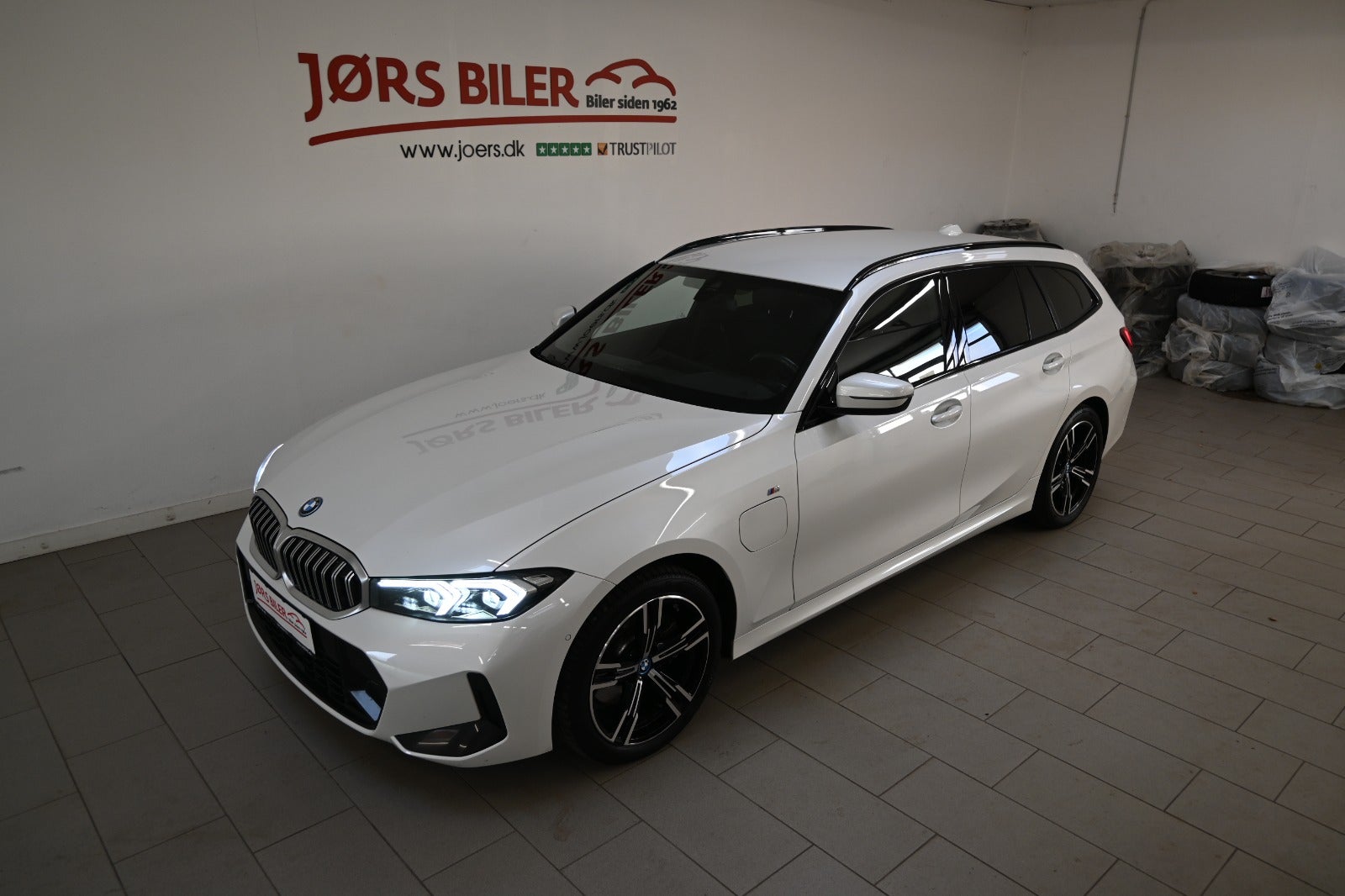 Helt rigtig sammensat 320e Touring i den flotte metallak "Mineral Weiss" som giver den ultimative kontrast til M-sport & shadowlines blanksorte detaljer.