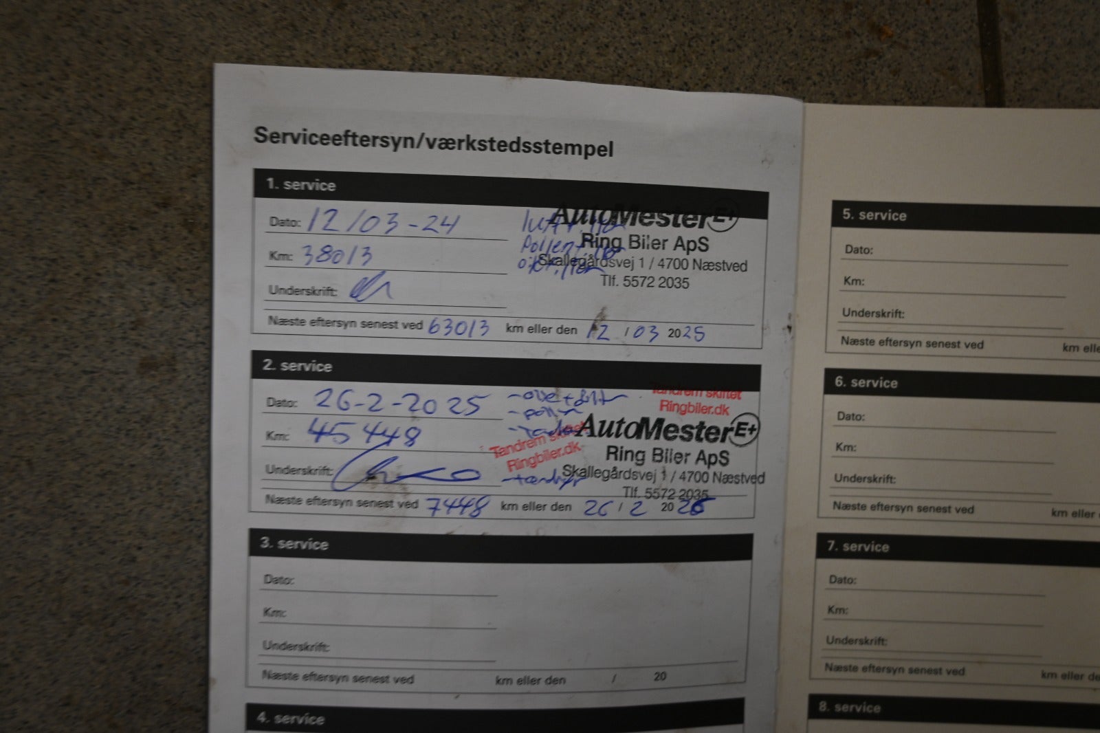 D. 26/02-2025 v. 45.448 km. - inkl. Tandremsskifte