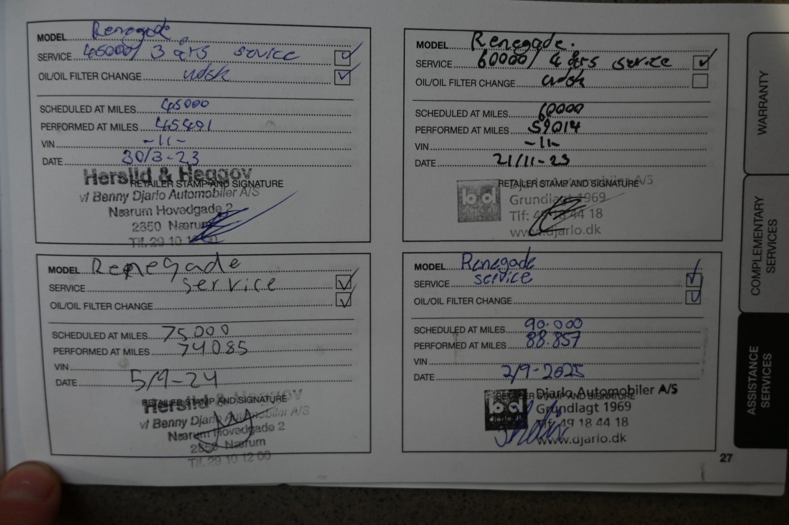 1 EJER - ALLE SERVICE OVERHOLDT HOS JEEP - AFT. TRÆK 1.150 KG. - SOMMER/VINTERHJULServicehistorik på denne bil - alt udført hos Jeep: