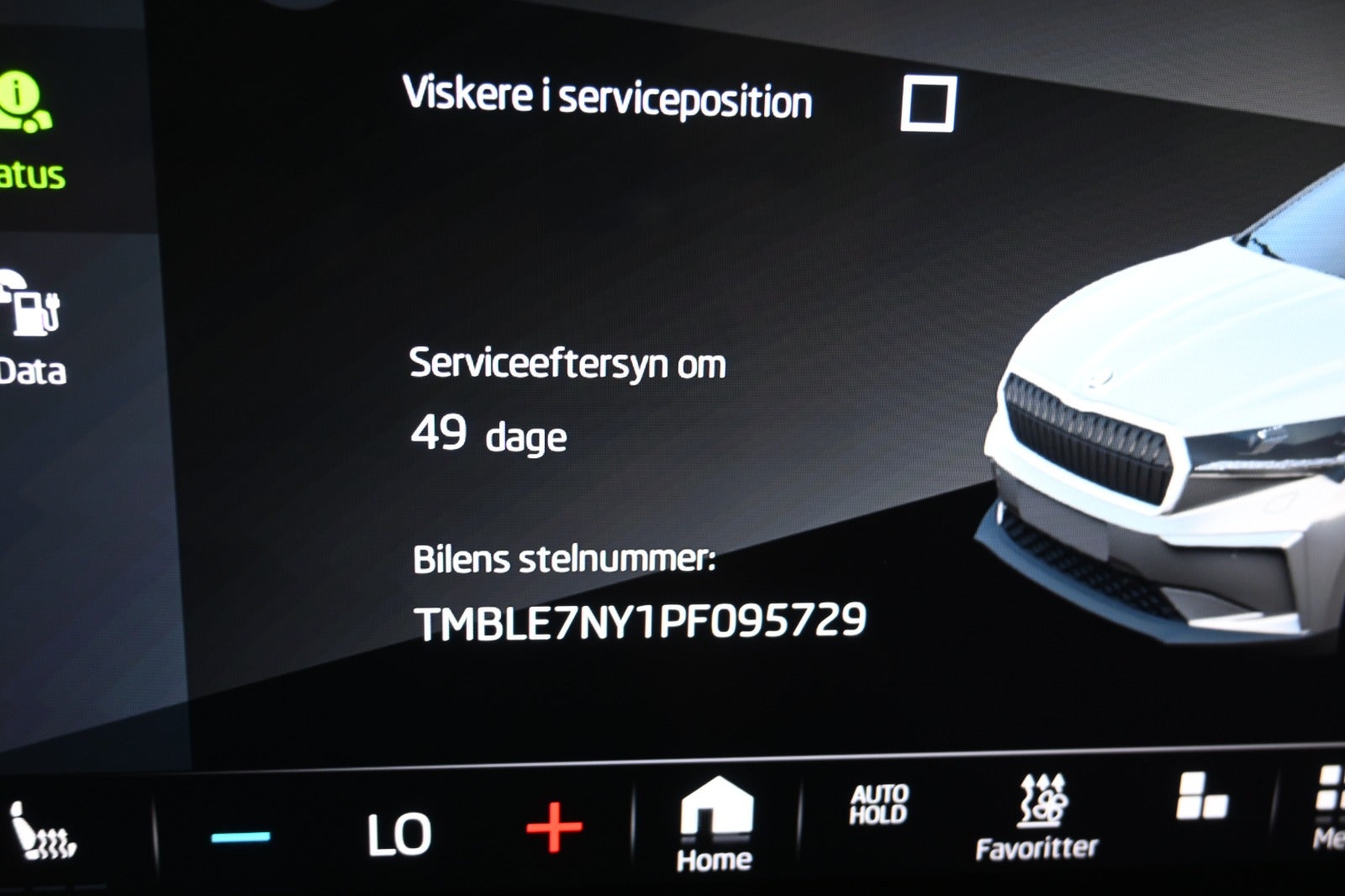 Automatgear, varme i rat, 3 zone klima, elektrisk kabineklima m. timer, varmepumpe, fjernb. centrallås i nøgler, nøglefri adgang, nøglefri tænding, adaptiv fartpilot med kø-assistent, aut. nedbl. bakspejl, udv. temp. måler, 3 trins sædevarme i for & bagsæder, 4x el-ruder, el betjent bagklap, elektrisk parkeringsbremse, headup display projekterende, trådløs mobilopladning, type-2 ladekabel medfølger.