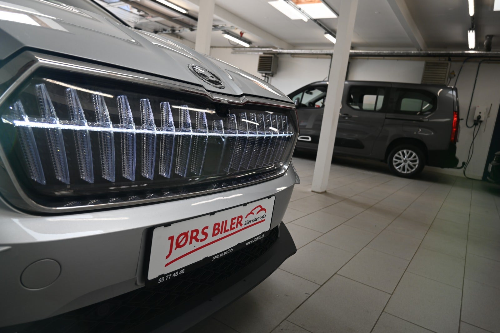 19" org. alufælge m. sommerdæk, 19" org. alufælge m. vinterdæk, el-klapbare sidespejle m/varme, "Crystal Face" LED frontgitter, LED kørelys, Crystal Light Matrix LED forlygter, dynamisk kurvelys, adaptive forlygter, LED baglygter med dynamisk blinklys, blanke tagrælings & rudelister, mørktonede ruder i bag, svingbart træk (elektrisk) 1.200 kg., metallak "Brilliant Silver".