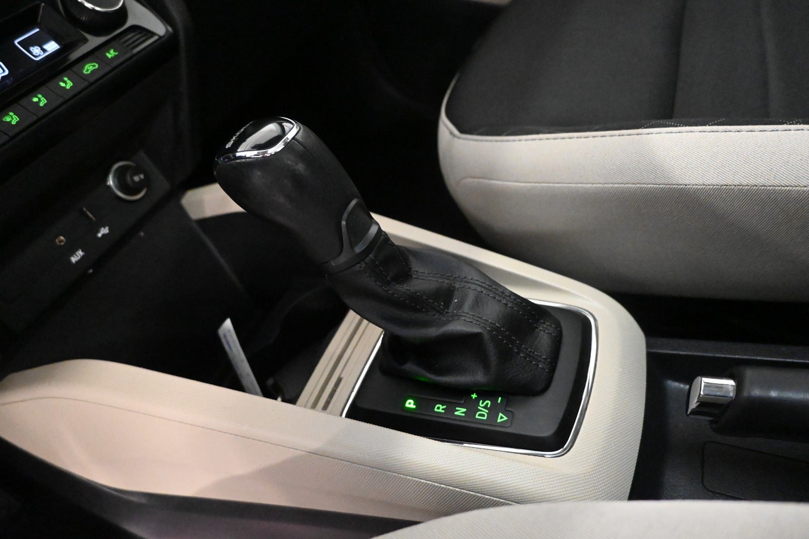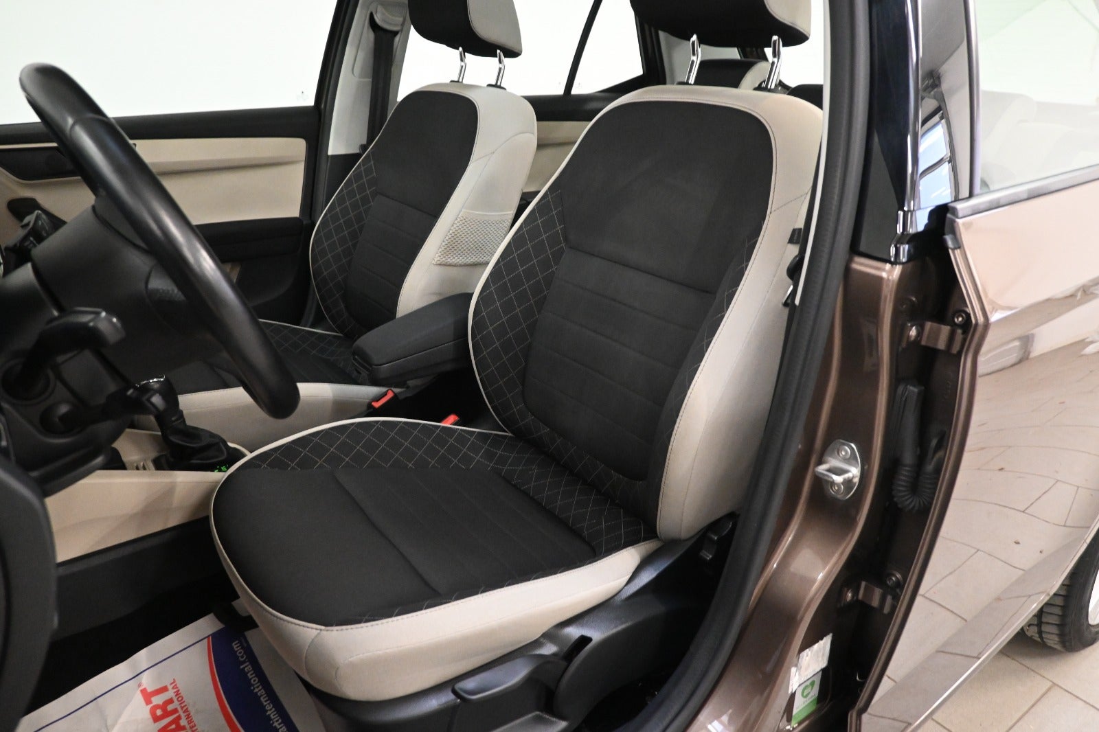 Kørecomputer, bagagerumsdækken, multifunktionsrat, læderrat, sort/beige stofindtræk, pianoblankt interiørdekor, højdejust. forsæder, splitbagsæde, justerbart midter-armlæn, kopholder.