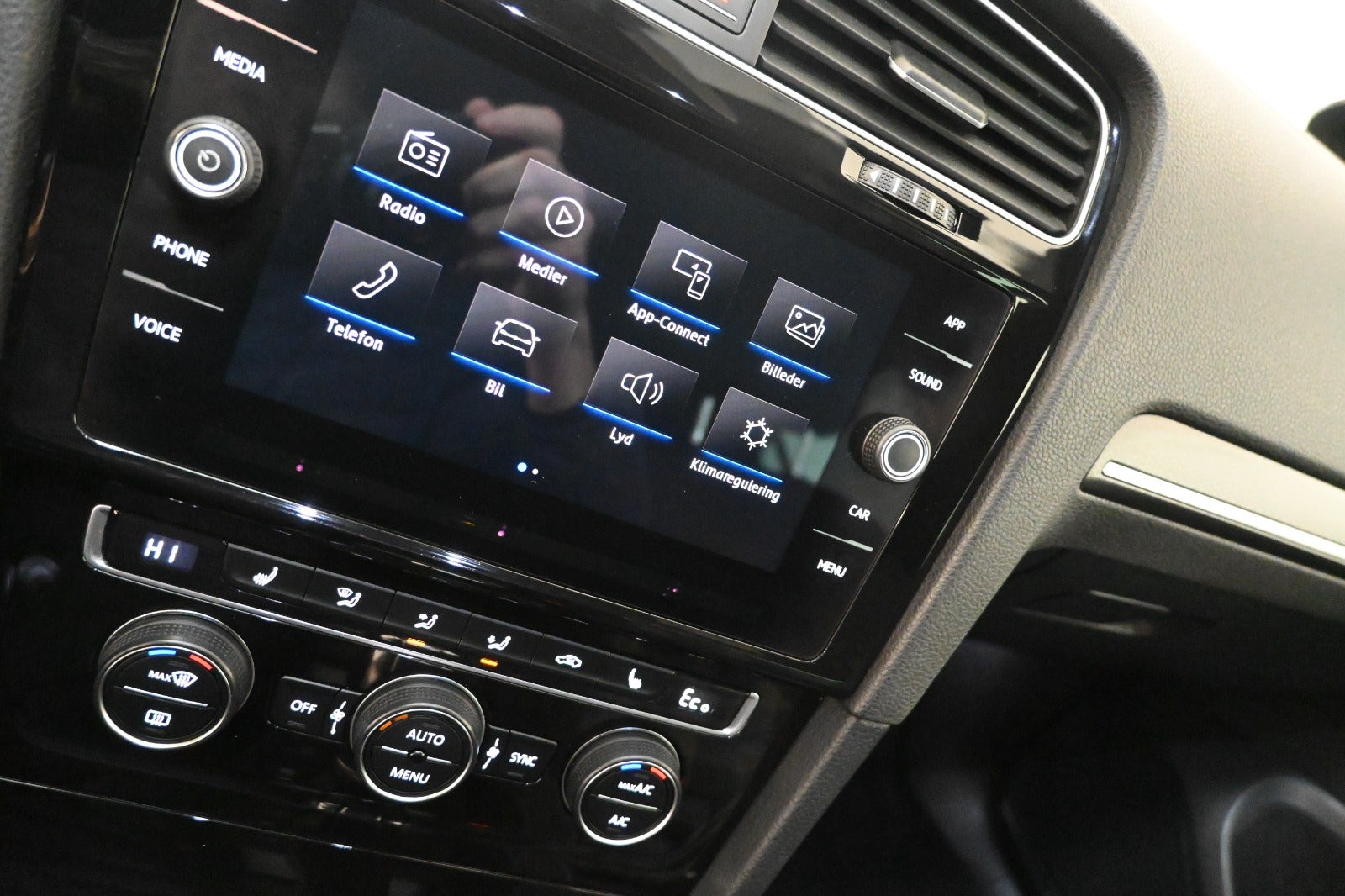 Org. cd/radio m. ratbet., navigation via Carplay, håndfrit til mobil, musikstreaming via bluetooth, Android Auto, Apple Carplay, USB tilslutning, SD kortlæser, AUX tilslutning.