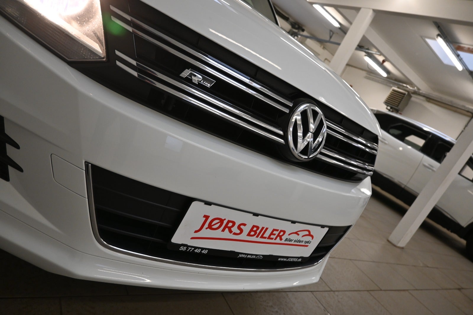 19" org. alufælge m. vinterdæk, el-sidespejle m/varme, tågelygter, blanke tagrælings & rudelister, mørktonede ruder i bag, svingbart træk (manuel) 2.000 kg., komplet R-line eksteriør, lakering "Pure White".