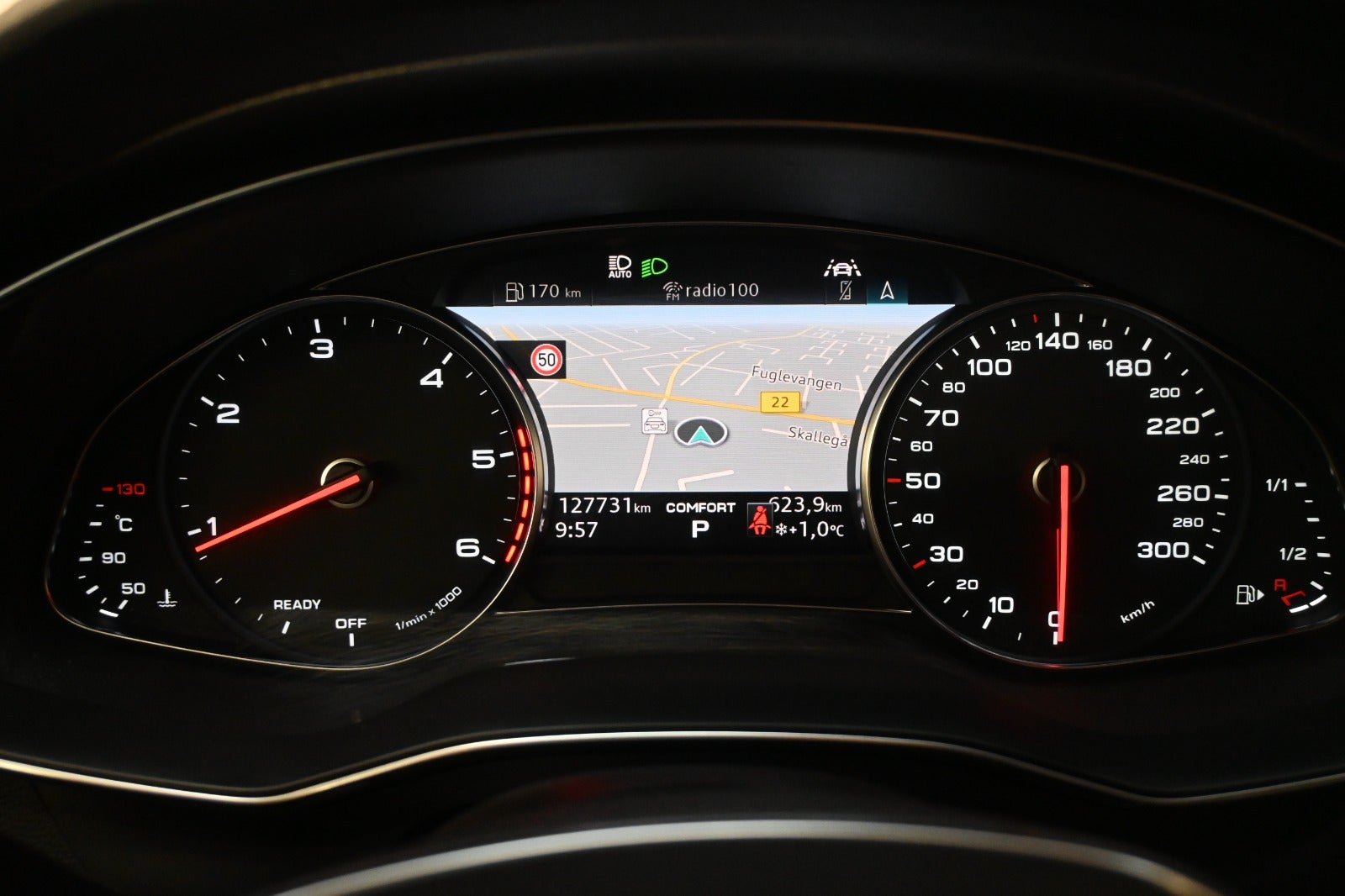 Automatgear, ratgearskifte, varme i rat, 2 zone klima, fjernb. centrallås i nøgler, nøglefri tænding, adaptiv fartpilot med kø-assistent, aut. nedbl. bakspejl & sidespejl, udv. temp. måler, 3 trins sædevarme, 4x el-ruder, automatisk start/stop, el betjent bagklap, elektrisk parkeringsbremse inkl. hill-hold, Audi drive selection.