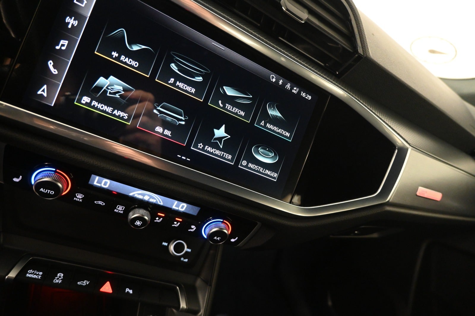 DAB+ radio m. ratbet., navigation via Carplay, håndfrit til mobil, musikstreaming via bluetooth, trådløs Android Auto & Apple Carplay, USB-C tilslutning, Audi soundsystem m. aktiv subwoofer.