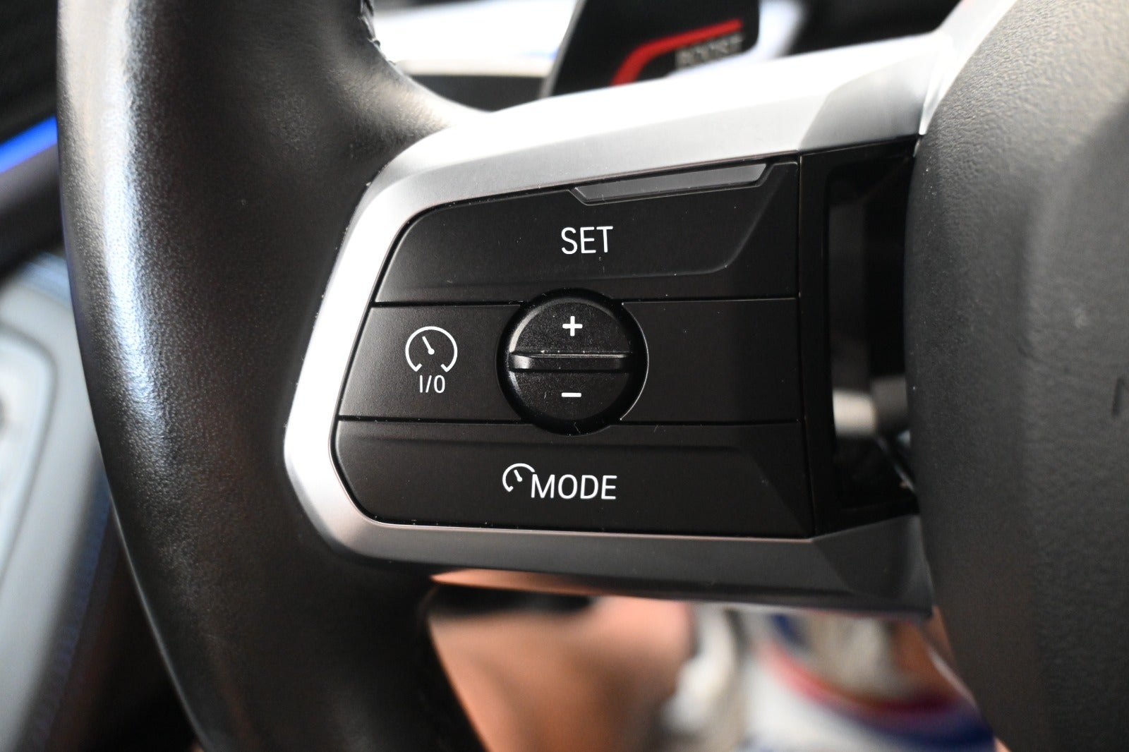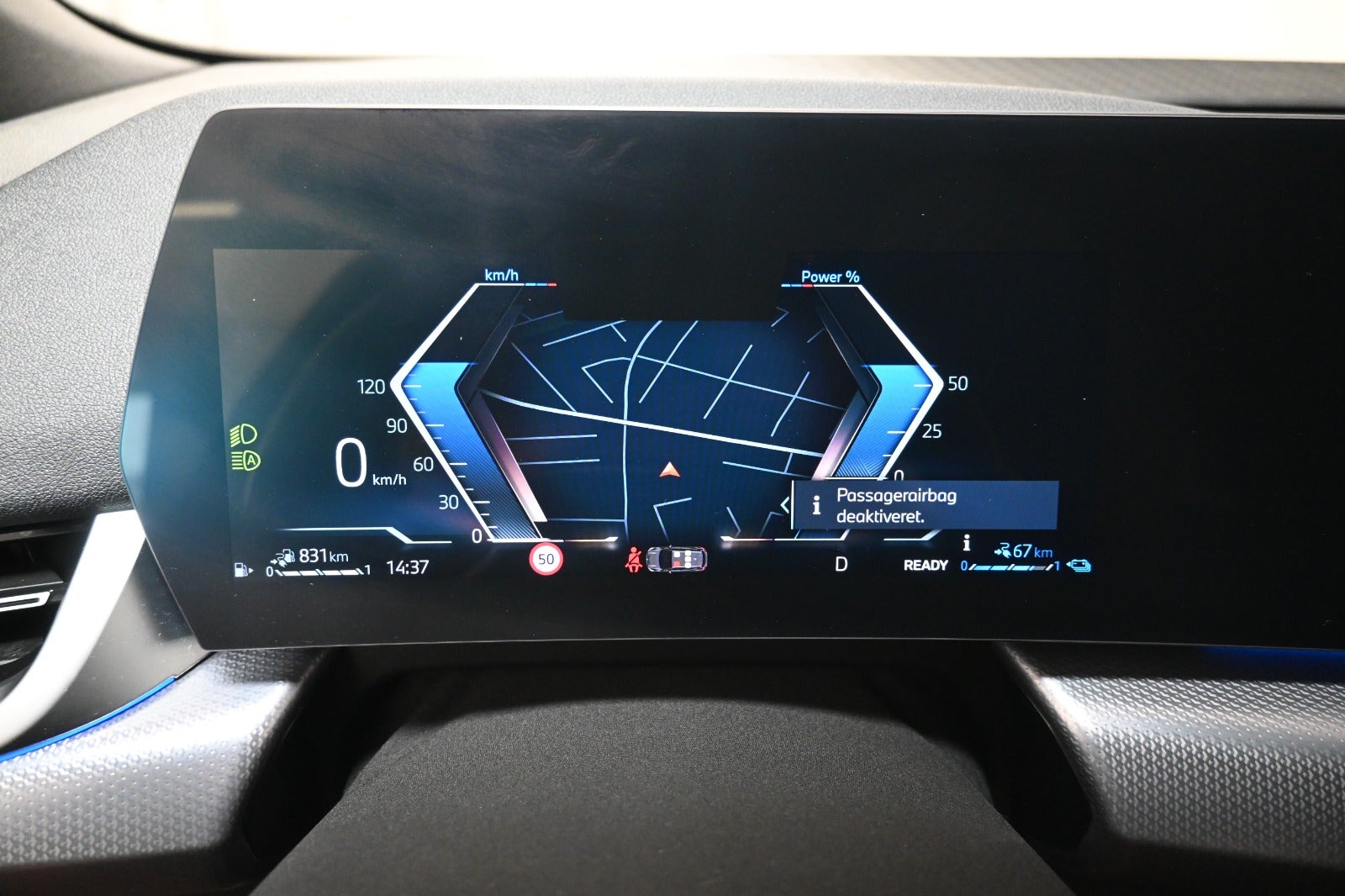 Kørecomputer, widescreen display m. digitalt cockpit, kortvisning i digitalt cockpit, bagagerumsdækken, multifunktionsrat, M-sport læderrat m. shift paddels, komplet sort læder/alacantara-indtræk med M-blå syninger, sportssæder m. variabel lårstøtte, højdejust. forsæder, splitbagsæde, mørk loftbeklædning, ambiente belysning m. farvetema, Alu-interiørlister "Hexacube Dark", svævende midterkonsol.