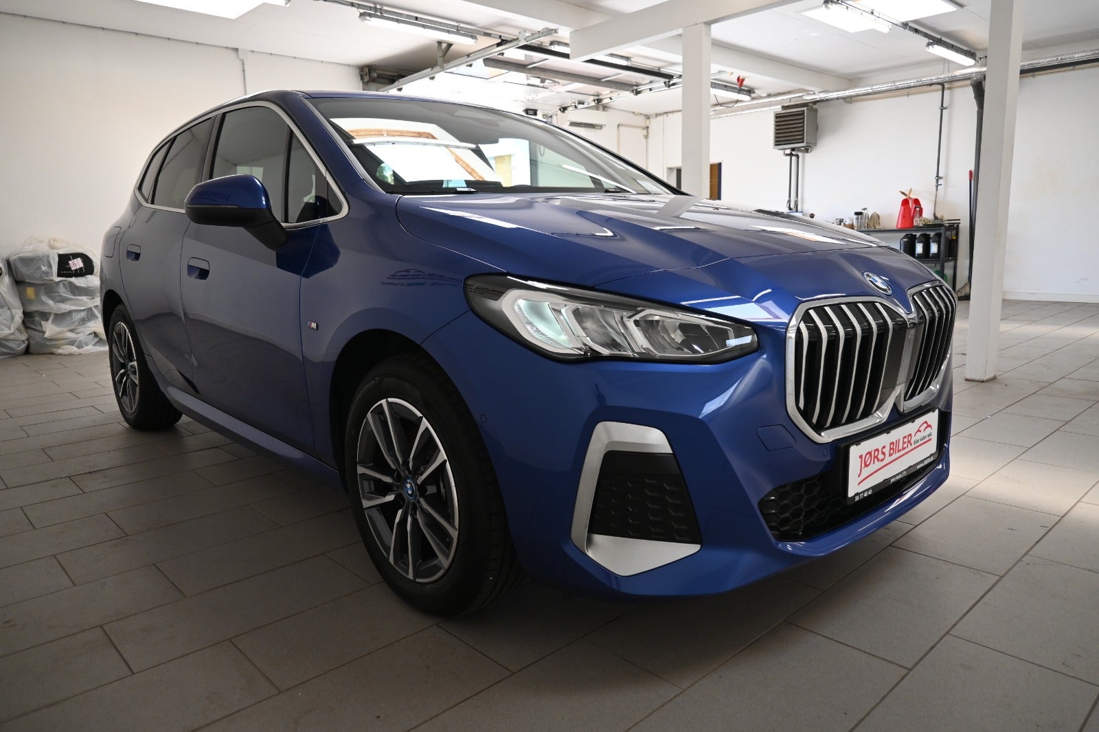 Helt rigtig sammensat BMW 225e i den flotte M metallak "Portimao Blue", som står flot i kontrast til M-sports sorte detaljer.