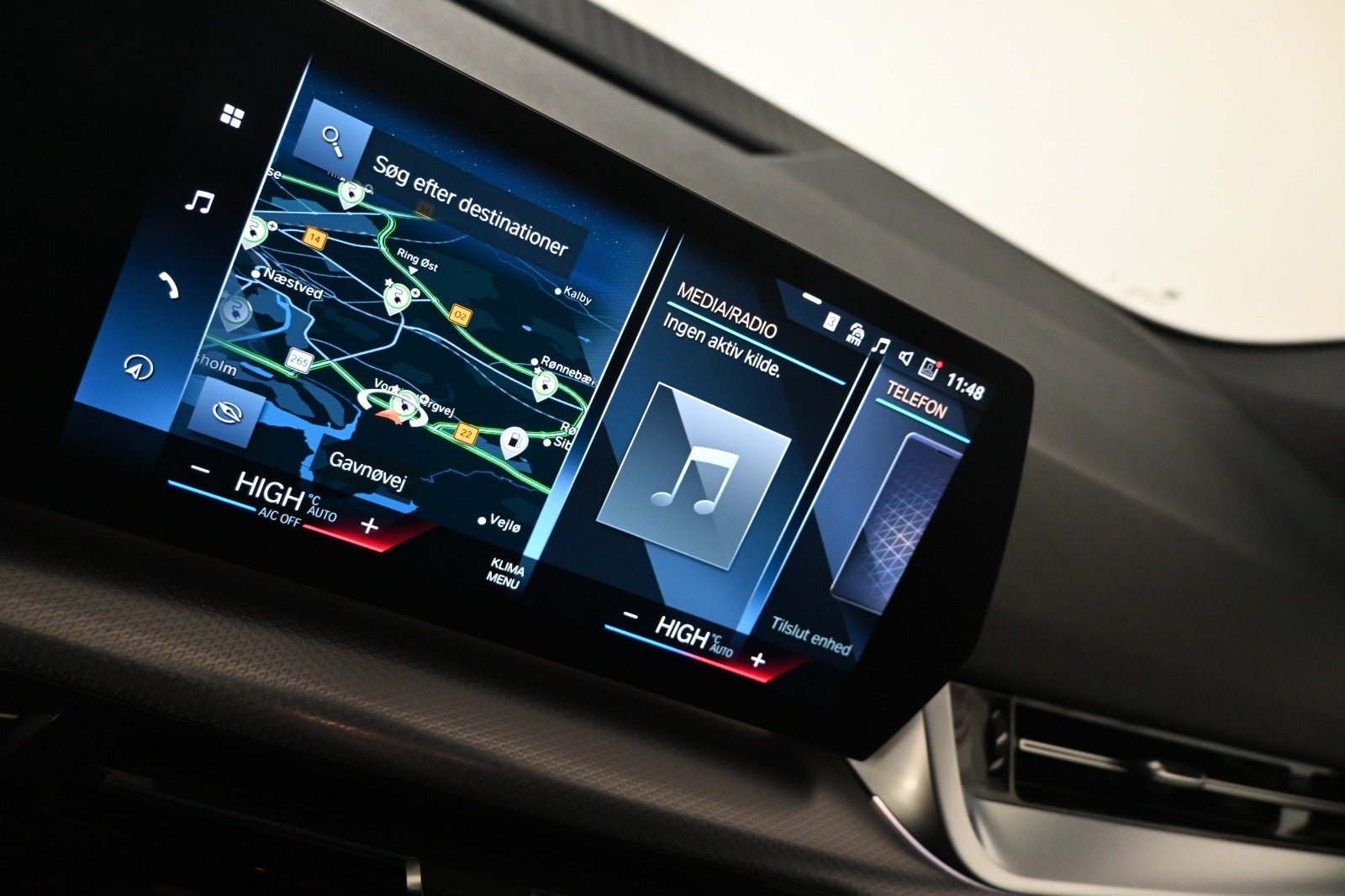 Automatgear, 2 zone klima, elektrisk kabinevarmer m. timer, fjernb. centrallås i nøgler, nøglefri tænding, adaptiv fartpilot med kø-assistent, udv. temp. måler, 3 trins sædevarme, 4x el-ruder, automatisk start/stop, el betjent bagklap, elektrisk parkeringsbremse inkl. hill-hold, BMW drive modes, type-2 ladekabel & nødlader (mormorlader) medfølger.