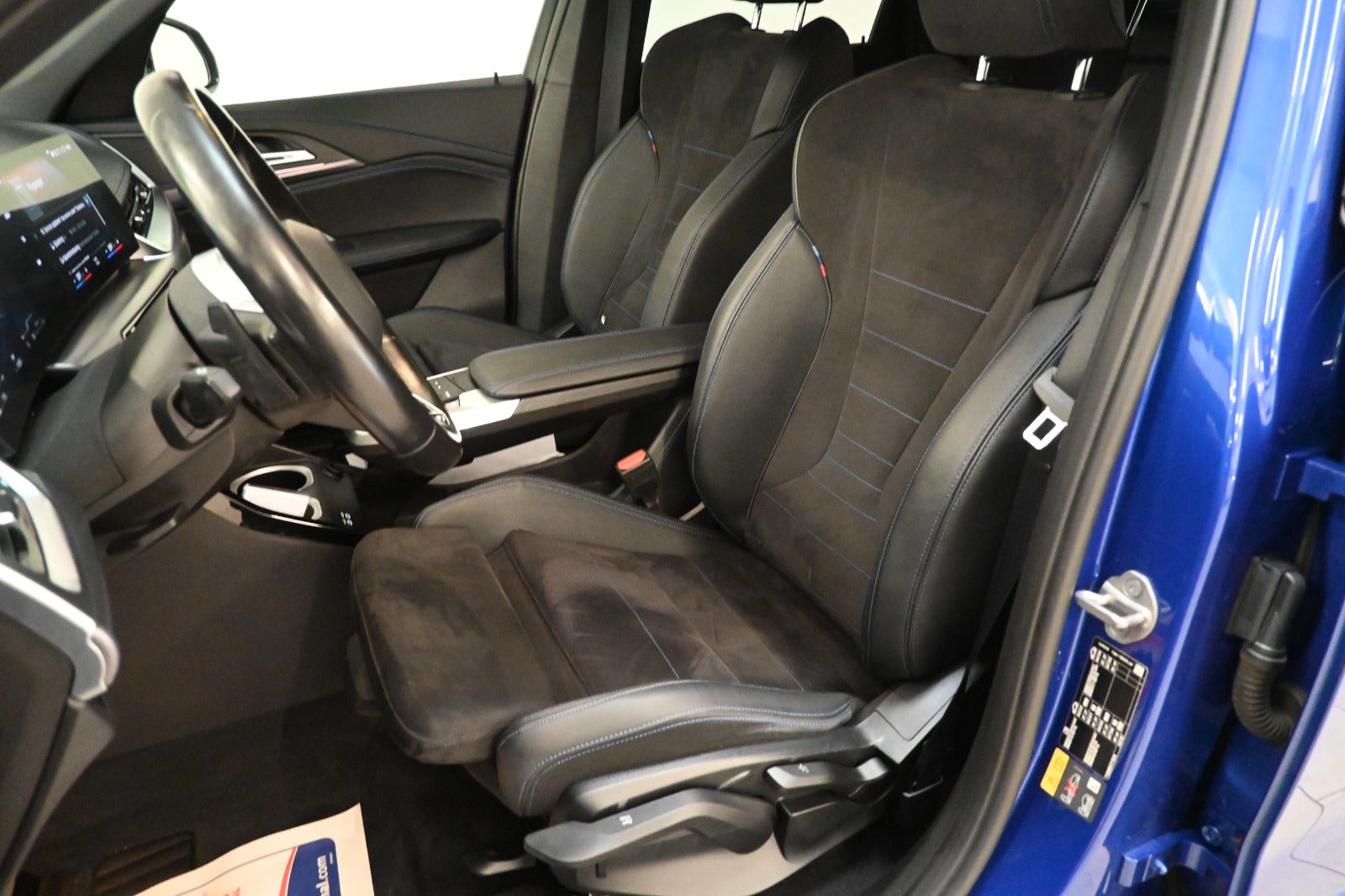 Kørecomputer, widescreen digitalt cockpit m. kortvisning, bagagerumsdækken, multifunktionsrat, M-sport læderrat m. shiftpaddels, mørkt læder/alcantara-indtræk m. blå kontrastsyninger, sportssæder m. variabel lårstøtte, højdejust. forsæder, splitbagsæde, mørk loftbeklædning, ambiente belysning m. farvetema, nappalæderbeklædt instrumentbord med M-blå kontrastsyninger, hexacube dark M Interiørlister, svævende midterkonsol, komplet M-sport interiør.