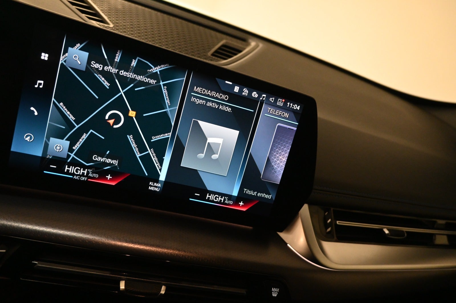 DAB+ radio m. ratbet., navigation professionel, widescreen display (curved display), håndfrit til mobil, musikstreaming via bluetooth, trådløs Android Auto & Apple Carplay, USB-C tilslutning foran & bagtil.