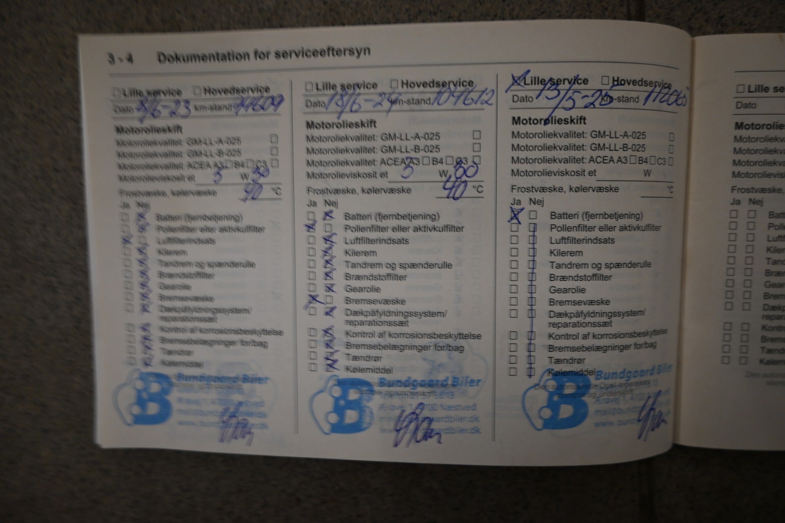 Servicehistorik på denne bil: