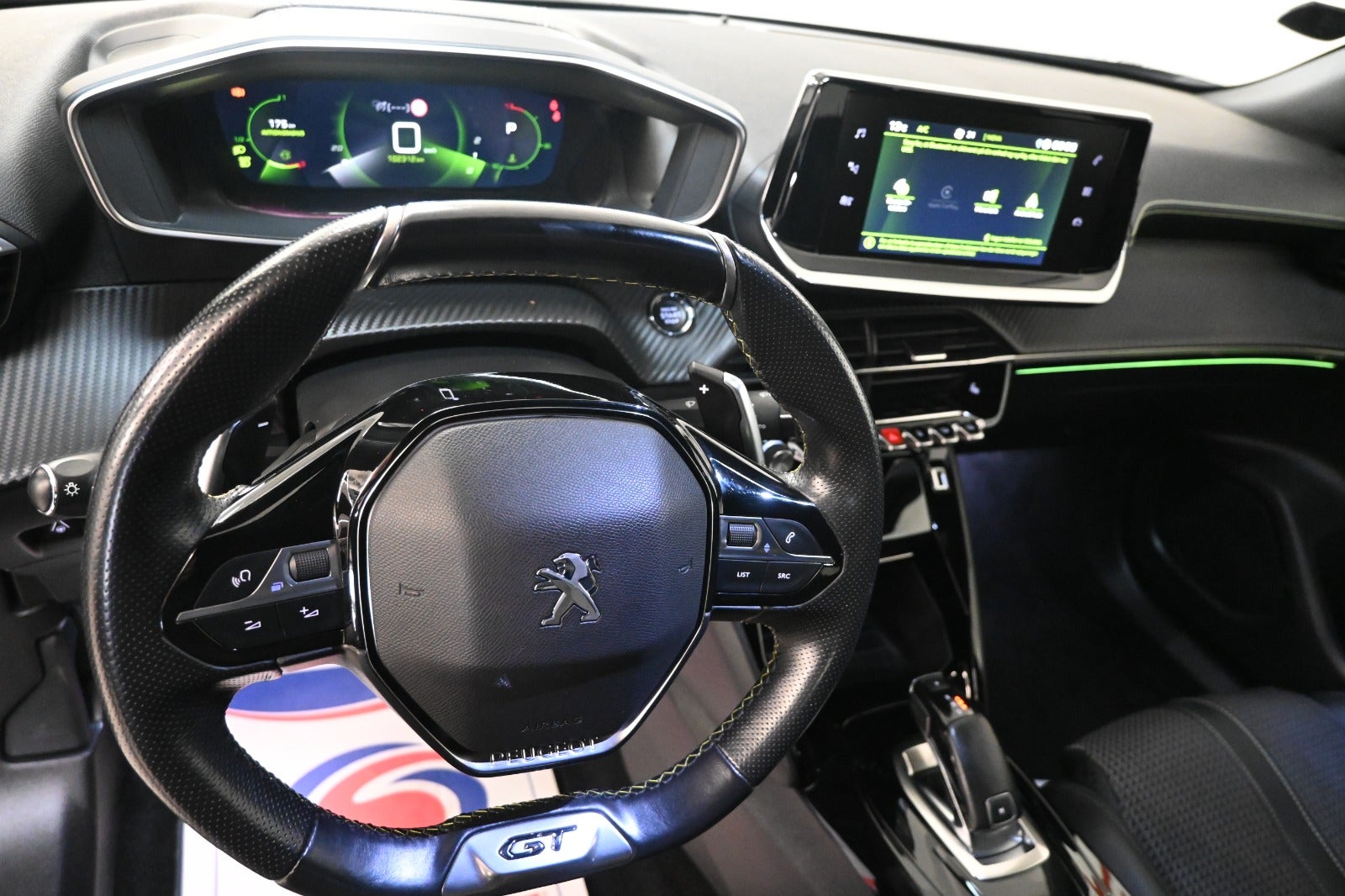 Kørecomputer, i-cockpit 3D digitalt cockpit, bagagerumsdækken, dobbelt bagagerumsbund, multifunktionsrat, læderrat, mørkt del-læderindtræk m. grønne kontrastsyninger, sportssæder, højdejust. forsæder, splitbagsæde, mørk loftbeklædning, ambiente belysning m. farvetema, carbonlook & pianoblankt interiørdekor, midterarmlæn, kopholder.