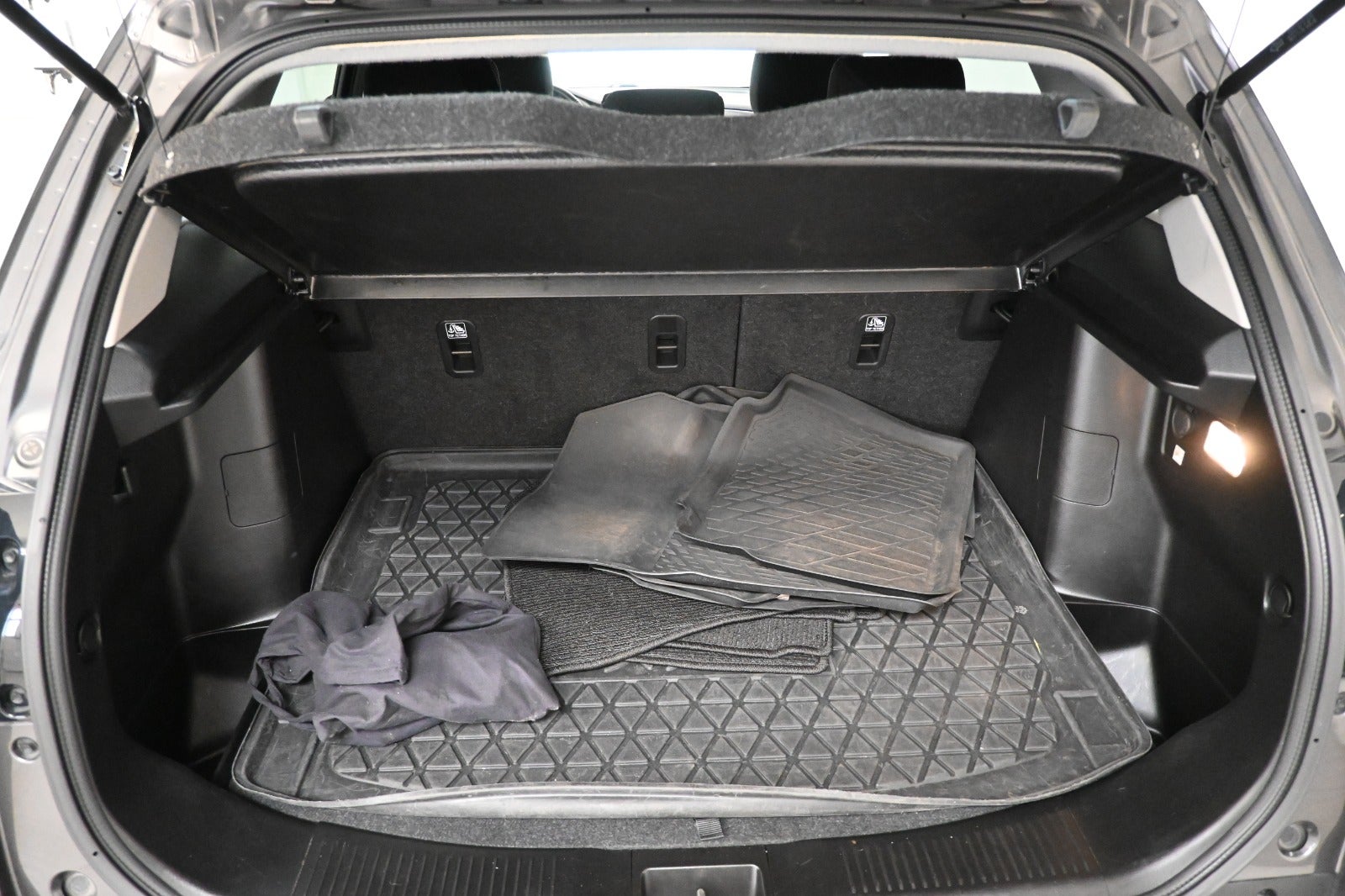 Kørecomputer, bagagerumsdækken, multifunktionsrat, læderrat, mørkt stofindtræk, højdejust. førersæde, splitbagsæde, midterarmæn, kopholder, interiørlister i måneskinssølv.