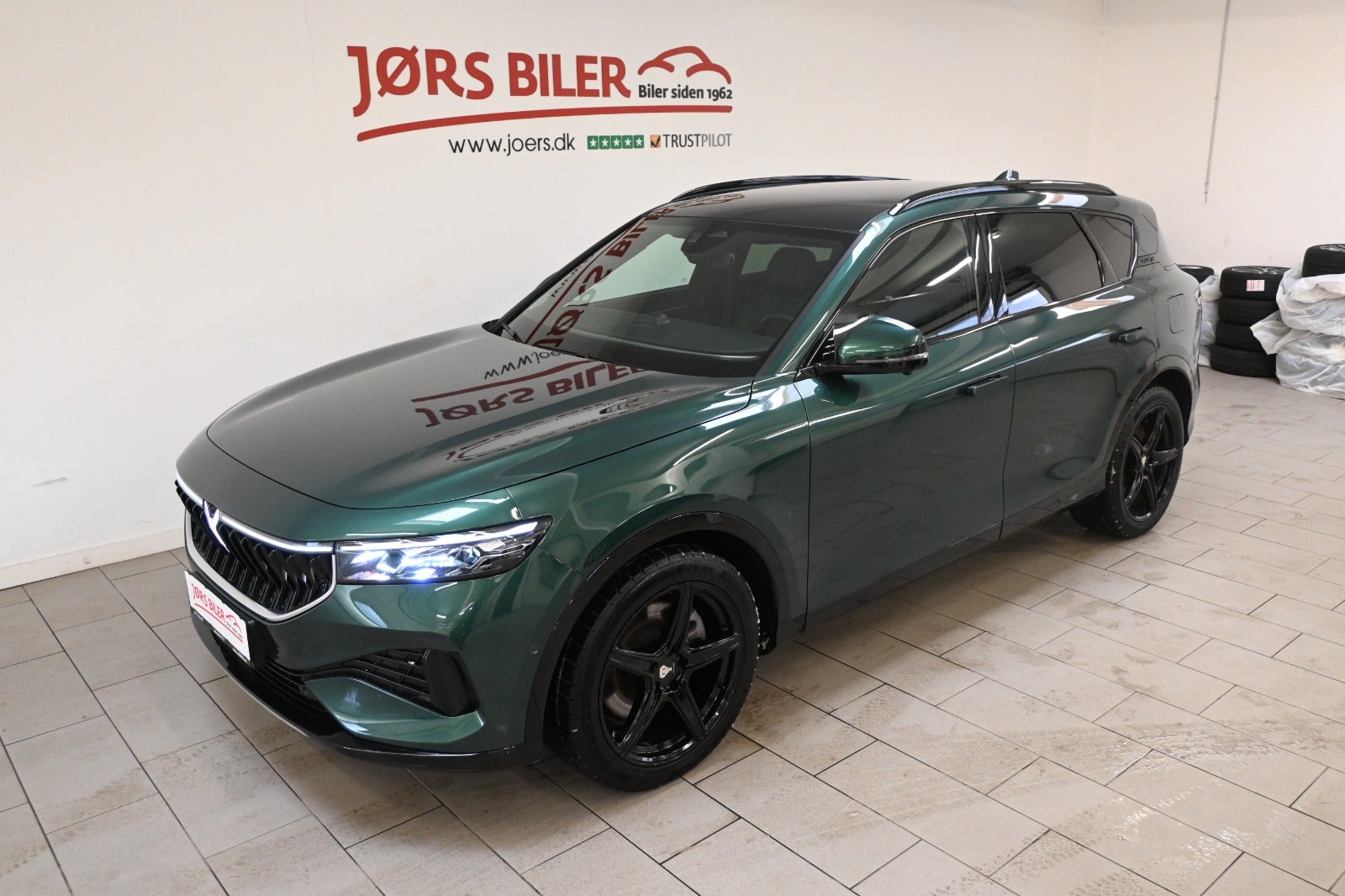 20" org. alufælge monteret med sommerdæk, 20" sorte alufælge monteret med vinterdæk, panorama glastag m. lysdæmpning/frozen effekt, el-klapbare sidespejle m/varme, LED kørelys, FULL LED forlygter med dynamisk blinklys, LED baglygter med dynamisk blinklys, blanksorte tagrælings & rudelister, mørktonede ruder i bag, områdebelysning & signaturbelysning, aftageligt træk 2.000 kg., metallak "Drak Green".