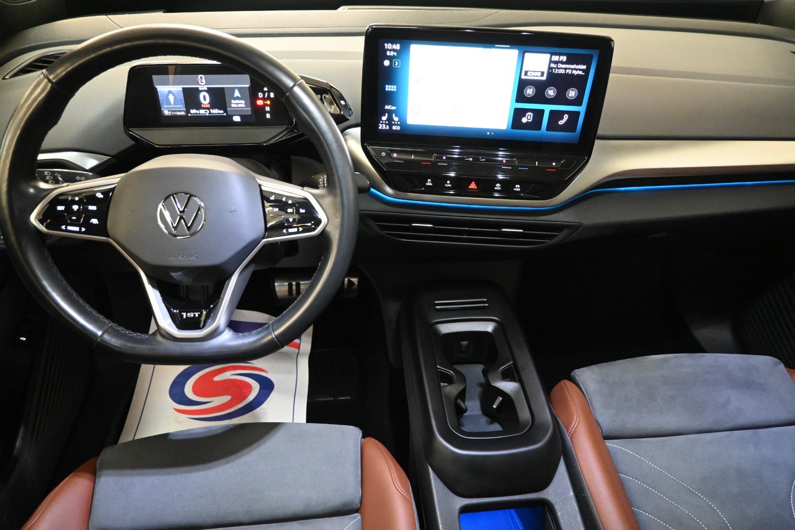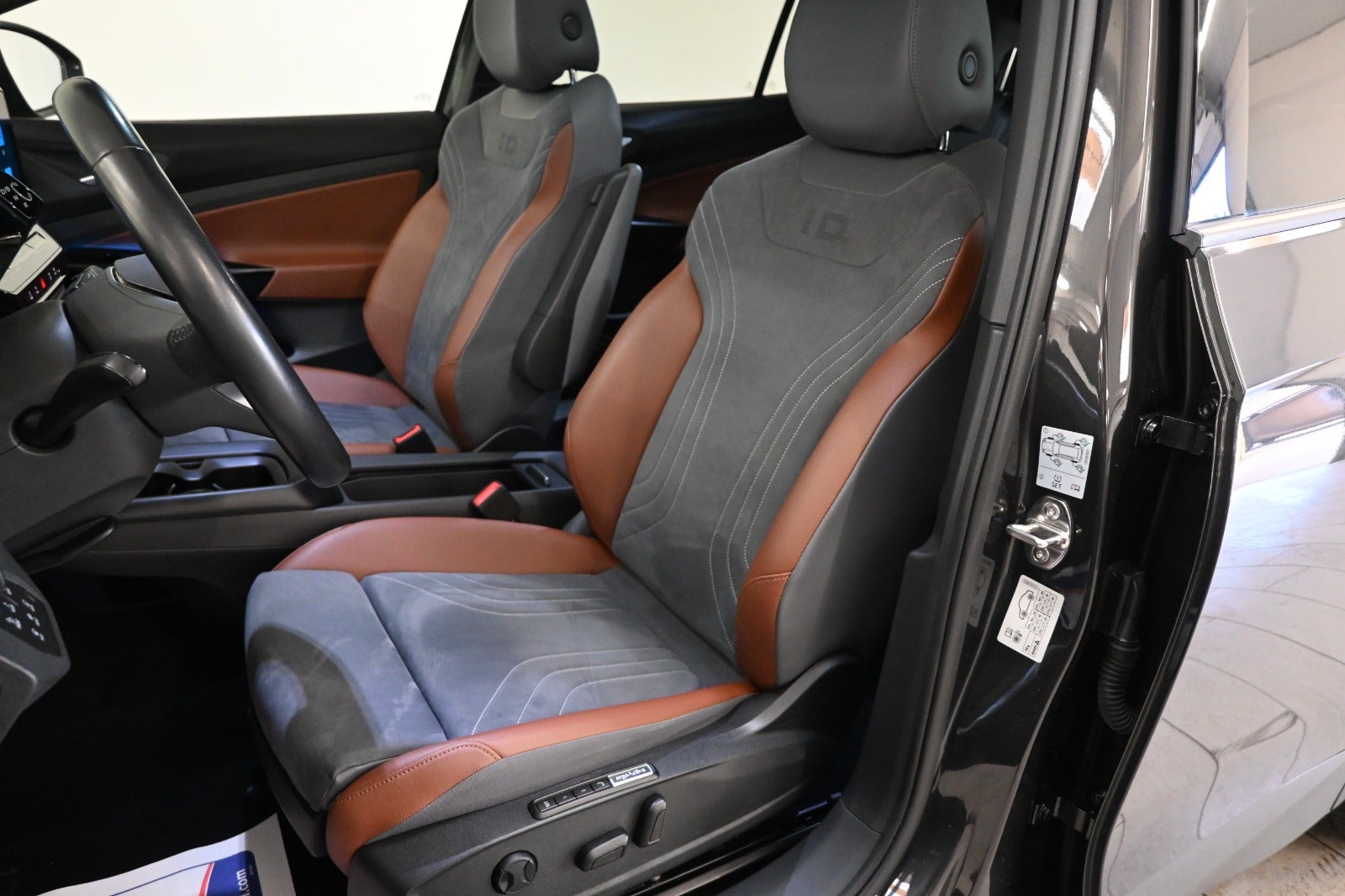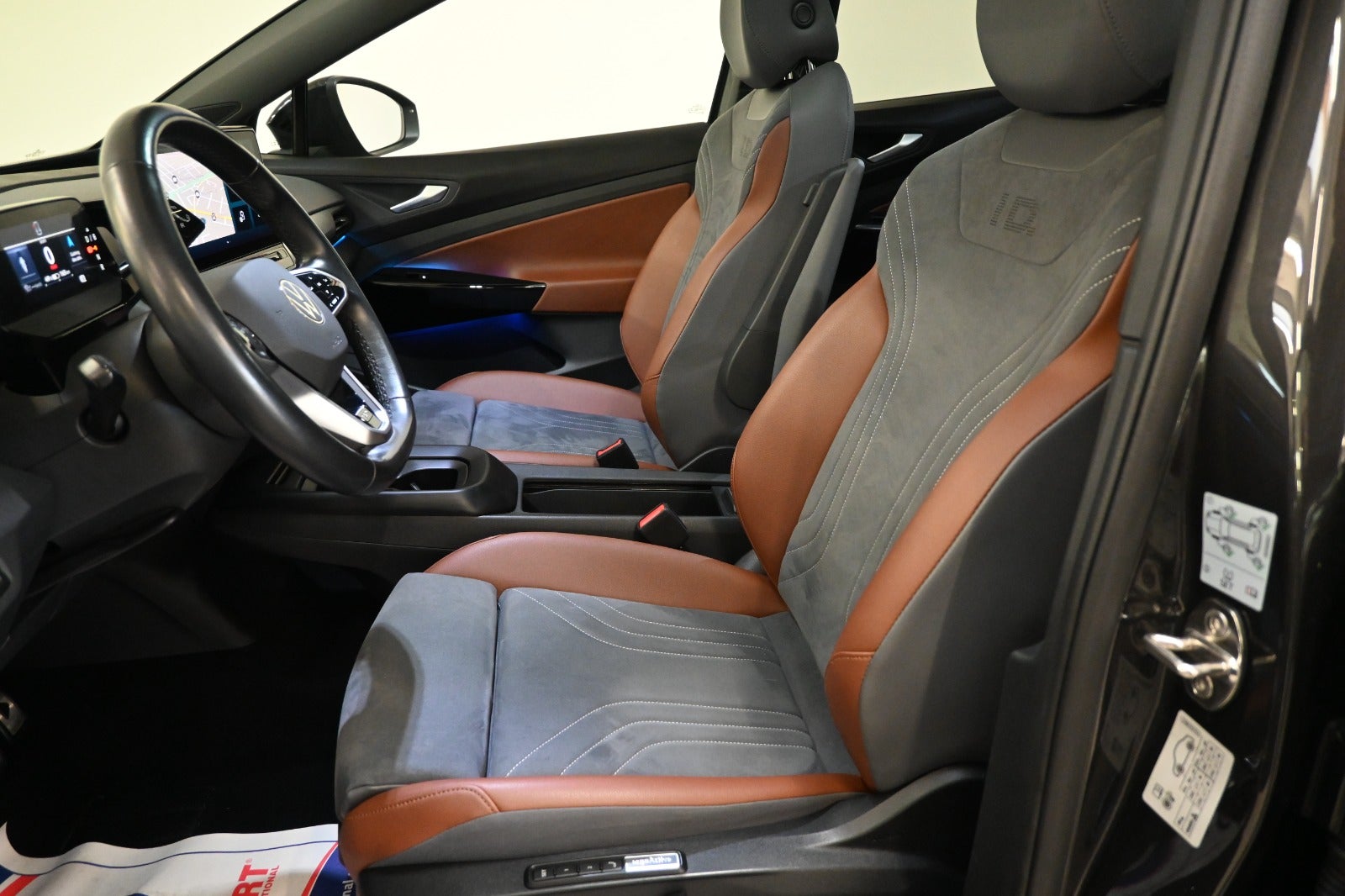 - Indtræk i brunt læder/ mørkt Alcantara