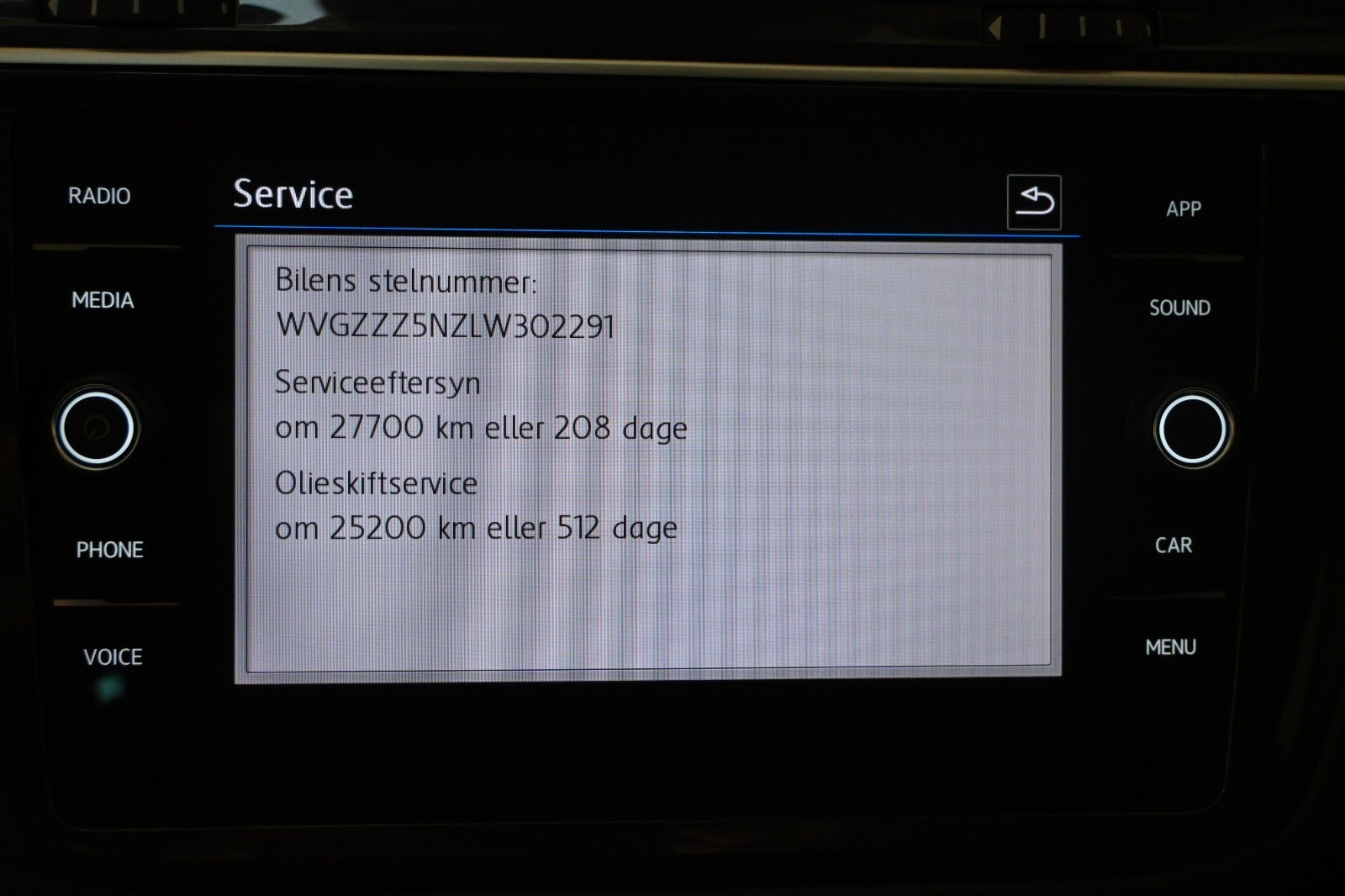 Service udført v. følgende intervaller hos VW:
